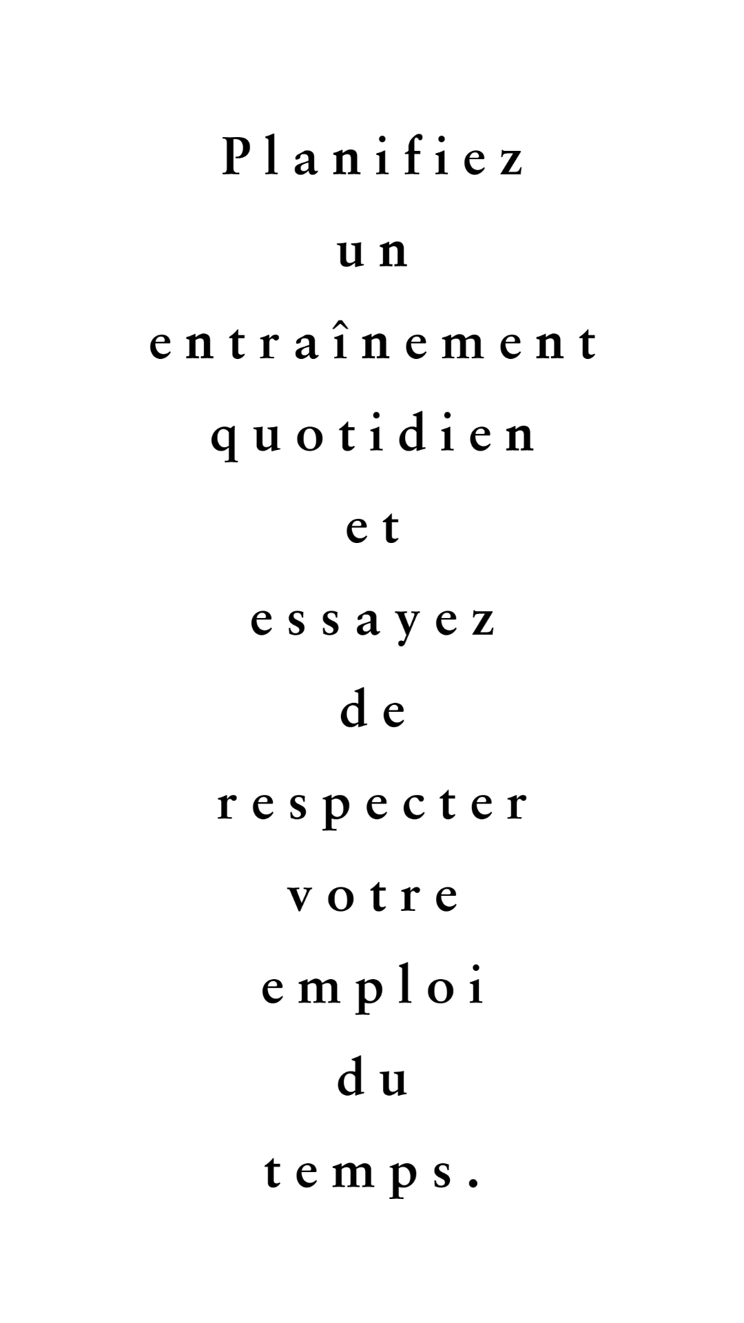 Planifiez un entraînement quotidien et essayez de respecter votre emploi du temps.