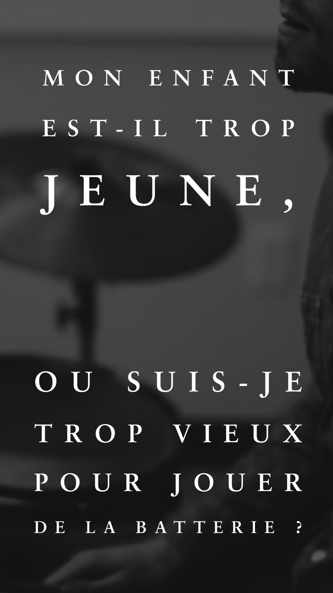 On n'est jamais trop vieux pour apprendre. Si votre enfant peut s'asseoir derrière la batterie avec ses deux pieds confortablement sur les pédales, vous êtes prêt à partir.