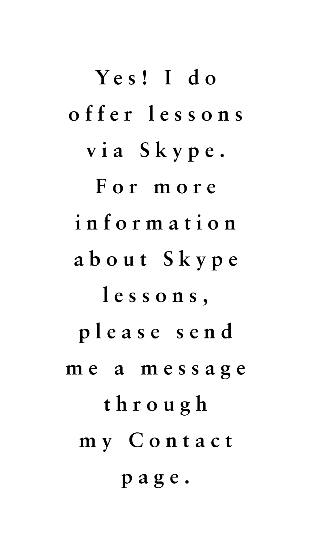 Yes! I do offer lessons via Skype. For more information about Skype lessons, please send me a message through my Contact page.