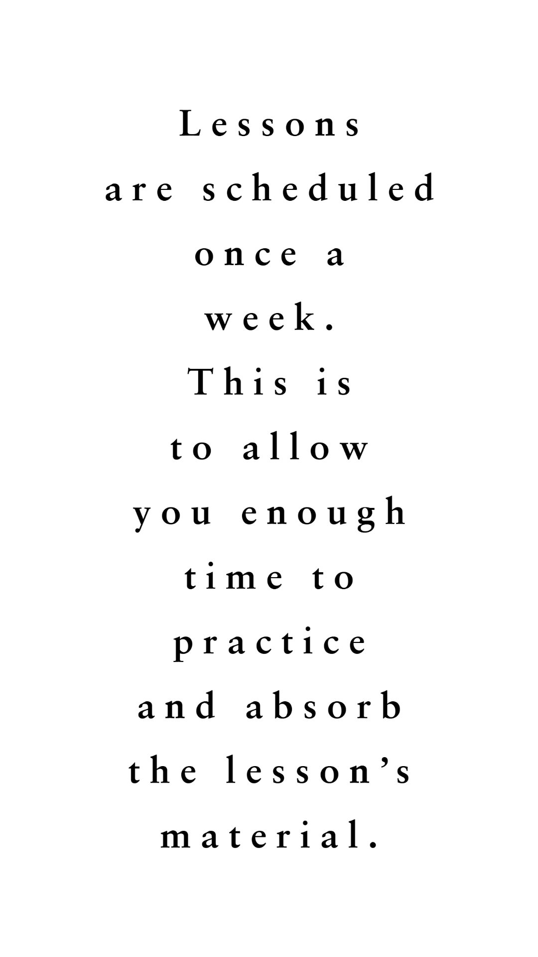 Lessons are scheduled once a week. This is to allow you enough time to practice and absorb the lesson's material.