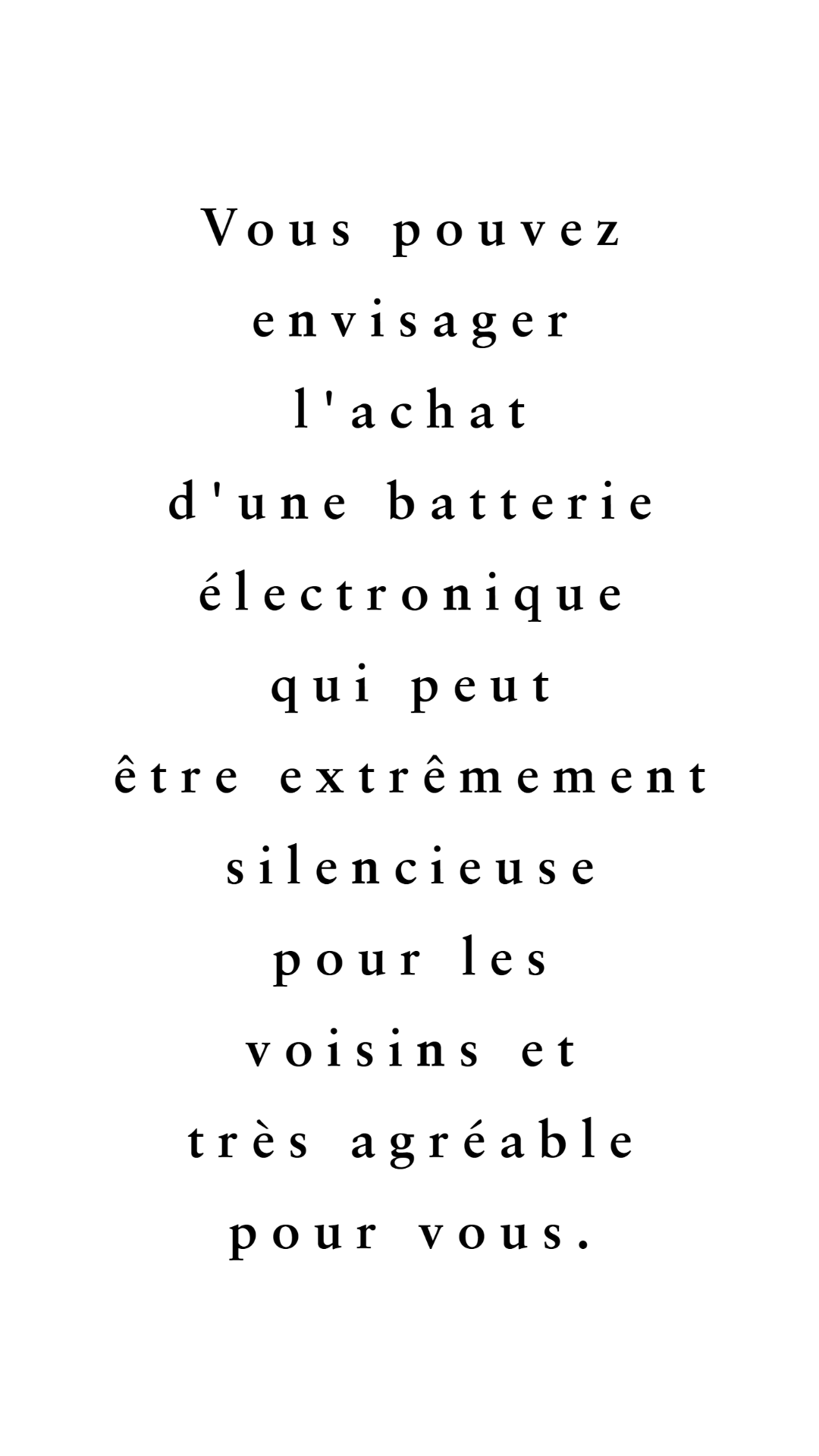 Vous pouvez envisager l'achat d'une batterie électronique qui peut être extrêmement silencieuse pour les voisins et très agréable pour vous.